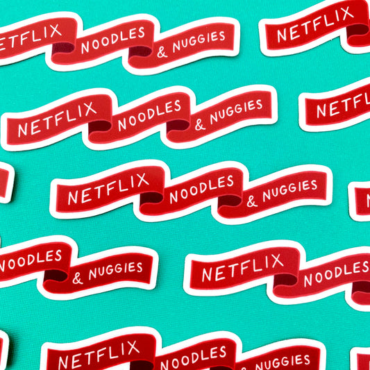 Netflix, Noodles, and Nuggies Red Banner Sticker